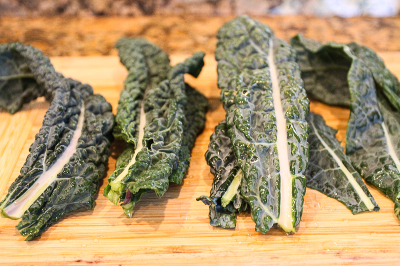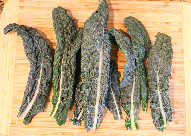 We found this beautiful “dinosaur” kale at Underwood Farms and picked it right out of the ground. Very satisfying!