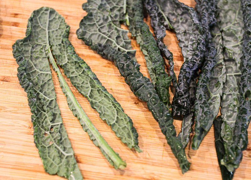 - You will wants to de-stem the kale because the stems can be really hard and fiberous which isn’t yummy in soup 🙂
