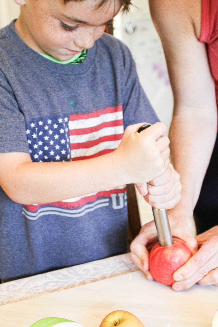 - Here is the apple corer. It’s a fun tool if you have it and kids might think it’s cool to hollow out the apple!