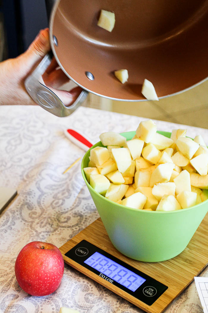 - 8 cups of diced apples (about 1-2 inch cubes; any non-green apples will work but we like McIntosh, Pink Lady, & Gala)