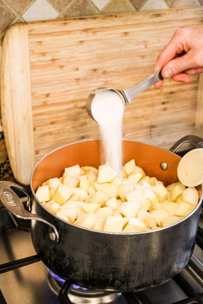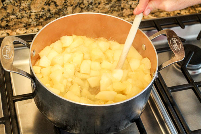 - It will seem like you need more water when you first start cooking the apple chunks. You don’t! You will be surprised how much water is already in apples and will come out as you cook them. You are basically cooking your apples in their own delicious apple juice!